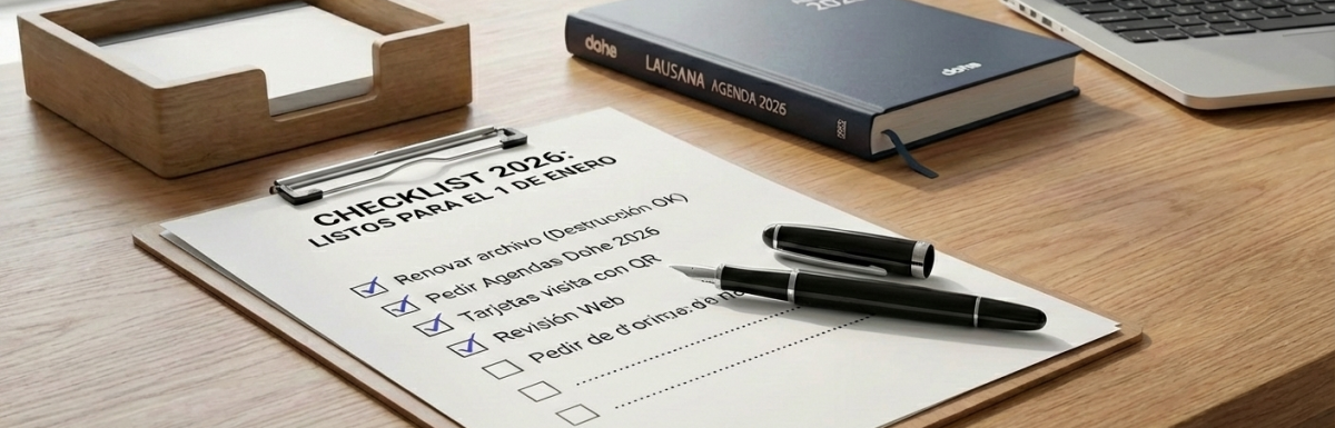 Para que este checklist pase de la teoría a la práctica, contar con un proveedor de confianza es vital. DASS gestiona y comercializa todo lo que necesitas para esta transición: desde las elegantes Agendas Dohe 2026 (como el modelo Lausana, Ref. 826) hasta la renovación total de tu papelería corporativa o el rediseño de tu sitio web.